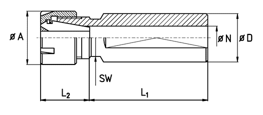 ER-Zangenspannfutter ER08 Schaft D=12,0 Schaftlänge=125,0 inklusive Mutter ER08M mit abgesetzter Spannfläche |