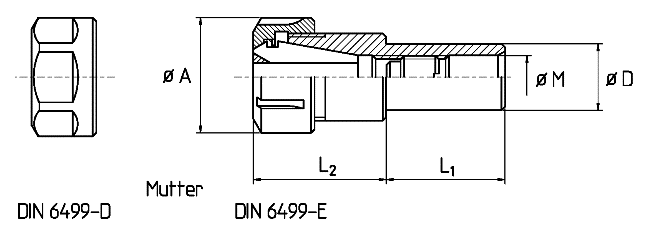 ER-Zangenspannfutter ER40 Schaft D=25,0 Schaftlänge=50,0 mit abgesetzer Klemmfläche inklusive Mutter UM/ER40 |