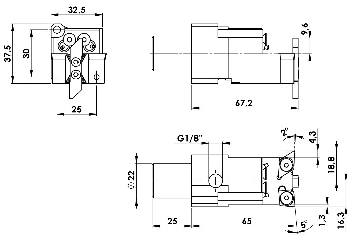 Wendeplattenhalter SCLCR09-SDUCL11-OXO Platte rechts: CC-09T3, Platte links: DC-11T3, Platte stirnseitig: Bimu OXO line für Rückseitenbearbeitung mit AK (Kühlmittelzufuhr G1/8“) STAR SW12RII, SB12/20R |