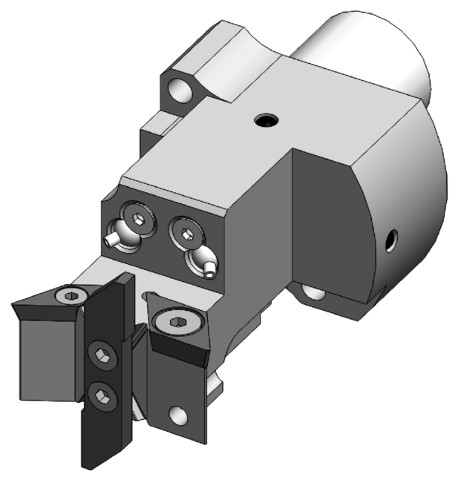 Wendeplattenhalter SVQCR11-SDUCL11-OXO Platte rechts: VC-1103, Platte links: DC-11T3, Platte stirnseitig: Bimu OXO line für Rückseitenbearbeitung mit IK (Kühlmittelzufuhr Rückseitenblock) STAR SR38, S |